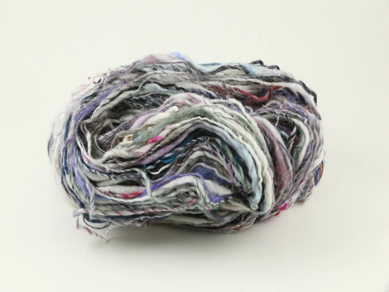 Innehåller bland annat västerbottnisk ull, merino, silke och glitterfiber.