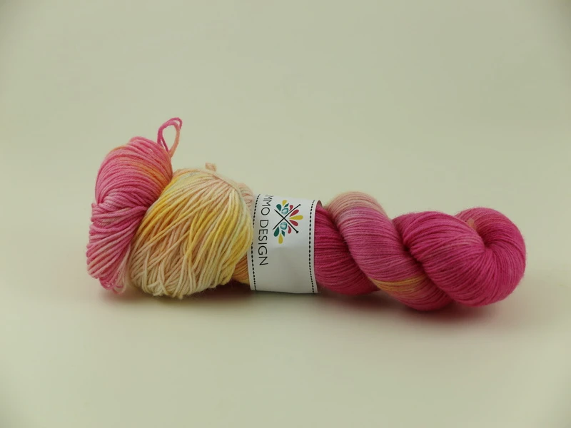 Tunt handfärgat sockgarn. En härva innehåller 100g, ca 420m. 75% ull 25% polyamid ger ett lättstickat och slitstarkt garn som är mycket drygt. Stickor 2,5-3mm.