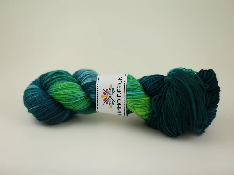 En härva innehåller 100g, ca 420m. 75% ull 25% polyamid ger ett lättstickat och slitstarkt garn som är mycket drygt.