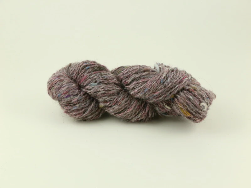 Ett handspunnet garn som består av västerbottnisk ull med inslag av merino, garnrester och silke för tweedkänsla.
