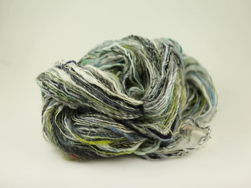 Handspunnet entrådigt garn med struktur och glans som blir väldigt trevligt i exempelvis en volangsjal.