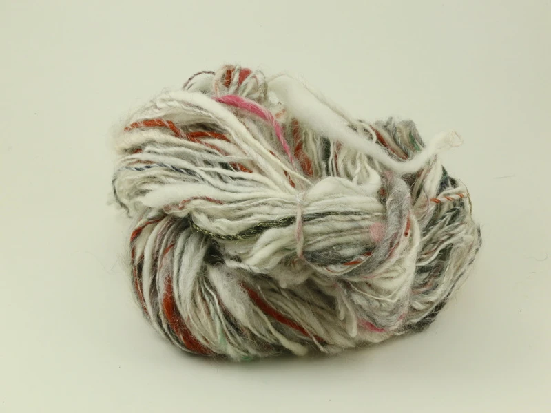 Innehåller bland annat merino, västerbottnisk blandrasull, corriedale, viskos och glitter.